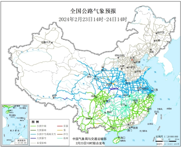 图3 全国公路气象预报图(2月23日14时-24日14时)