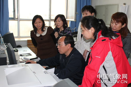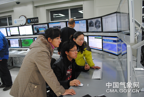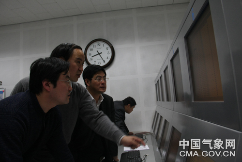 中国气象局综合观测司与国家气象信息中心业务人员查看观测数据 刘成成摄影