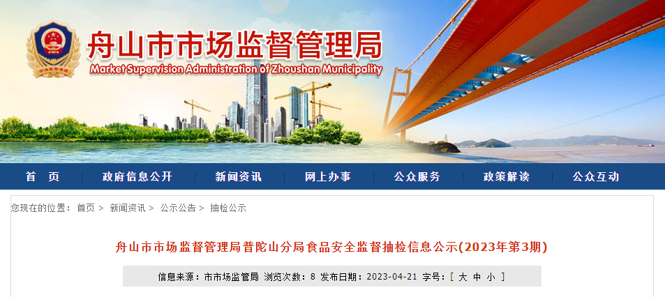 浙江省舟山市市场监督管理局普陀山分局公示1批次桑葚抽检不合格信息