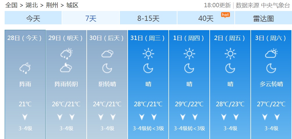 今晚到后天湖北西部有中等强度降水,东部有分散性降水,南部和东部局部有短时强降水、雷暴大风等强对流天气。