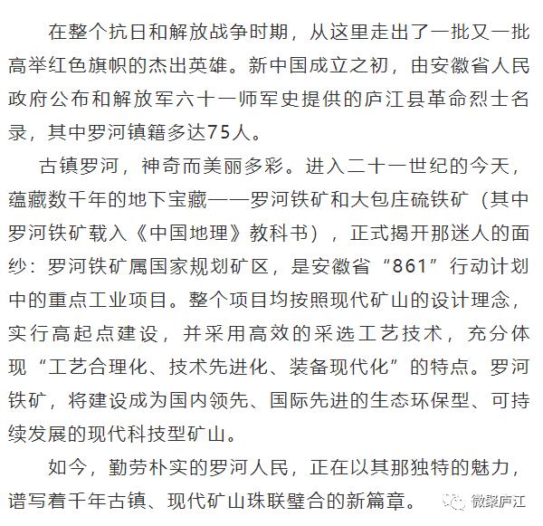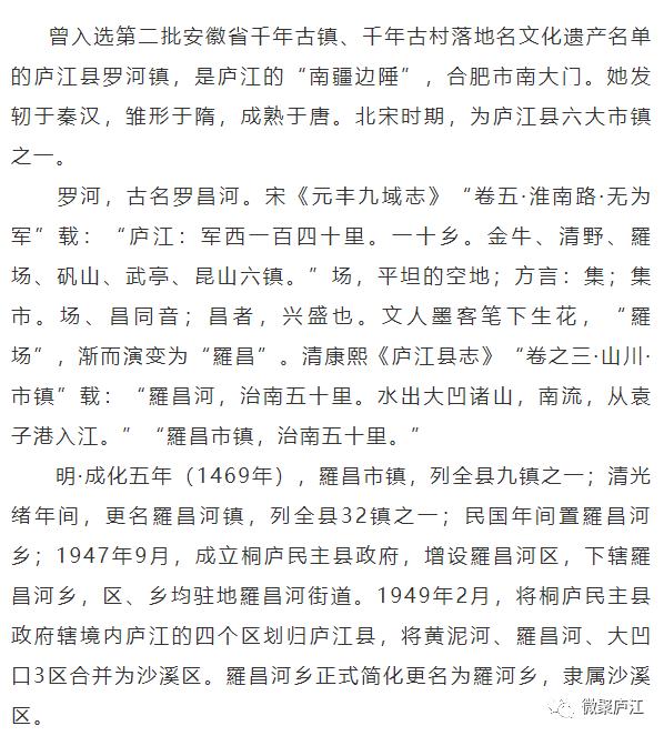 二千余年沧海桑田,罗河镇境域内蕴藏着丰厚的历史文化信息和自然生态景观资源:她有县境内历史最为悠久的西汉遗存“遗爱井”,有可与中国名山——皖南黄山相媲美的“黄山寨”,有蜚声大江南北的非物质文化遗产——母子碑林;近现代,她又是皖中大地红色革命摇篮;当代,她又成为安徽省最大的矿业基地……