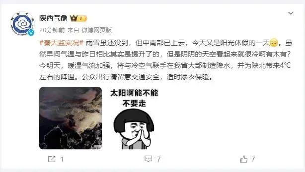 中南部除了铜川、宝鸡和商洛,大部最高气温都在10℃左右。陕北也没有很冷。不过早晚仍是寒意十足,还是需要做好保暖的。