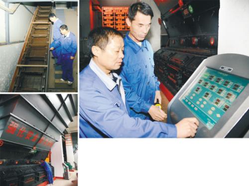 室外,冷风瑟瑟。室内,暖意融融。10月30日16时30分,记者来到惠天热电公司铁西一公司滑翔1号热源厂。当晚有20多名供暖工上岗,他们一直要忙碌到11月1日8时才能下班。走进热源厂二楼,记者看到,3台每小时可产生90吨高温高压蒸汽的大锅炉和2台每小时可产生40吨高温高压蒸汽的稍小一点儿的锅炉一字排开,足有三层楼高。室内听不到锅炉的轰鸣声,工人们有的开着铲车将煤推到漏煤口,通过传送带送进锅炉;有的打开锅炉观察口,查看炉膛内的煤层薄厚和燃烧程度;有的坐在微机控制室,通过大屏幕,观察设备压力、流量,调整供热运行参数……
