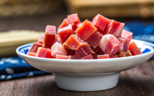禄劝县科技局引进云南农业大学“新云腿”加工技术,并采用撒坝生态猪进行腌制获得成功后定名为“撒坝火腿”,具有色艳、味鲜、生态营养等特点,在市场销售反应良好。撒坝火腿的加工方法,采用云南本地的撒坝猪后腿,经选腿、修割成琵琶形,低温冷凉、排血,将配制好的盐料分三次上盐、堆码、清表面,上挂通风阴凉处6个月左右自然熟化,既有火腿的特殊香味,又有玫瑰红色切面,是人们佐食的佳肴。撒坝火腿使用当地原生态养殖的撒坝猪为原料,辅以当地独特的加工工艺,肉香馥郁,口感纯美,品质独特。查看详细