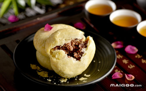 鲜花饼是以云南特有的食用玫瑰花入料的酥饼,是具有云南特色的云南经典点心代表。鲜花饼在云南当地烘焙品牌大都均有销售。鲜花饼也是中国四大月饼流派滇式月饼的经典代表之一。鲜花饼的制作缘起300多年前的清代,由上等玫瑰花制得的鲜花饼,因其特色风味历为宫廷御点,深得乾隆皇帝喜爱。近代滇式鲜花饼就是1945年昆明冠生园生产的鲜花饼为起源,当年在昆明的西坝昆明冠生园还专门开辟一块地种植食用鲜花用来加工鲜花饼和玫瑰糖。查看详细