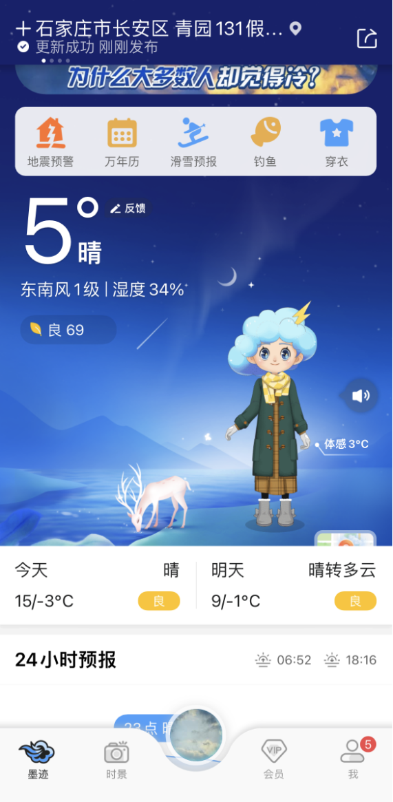 面对如此变幻莫测的天气,墨迹天气不仅能提供精准的温度、湿度、风力等细分天气预报信息,还将AI技术应用于气象预测领域,并基于海量数据和气象知识,提供更加智能、更为个性化的气象服务,进而为用户提供优质、千人千面的精准生活服务,打造高品质的生活体验。