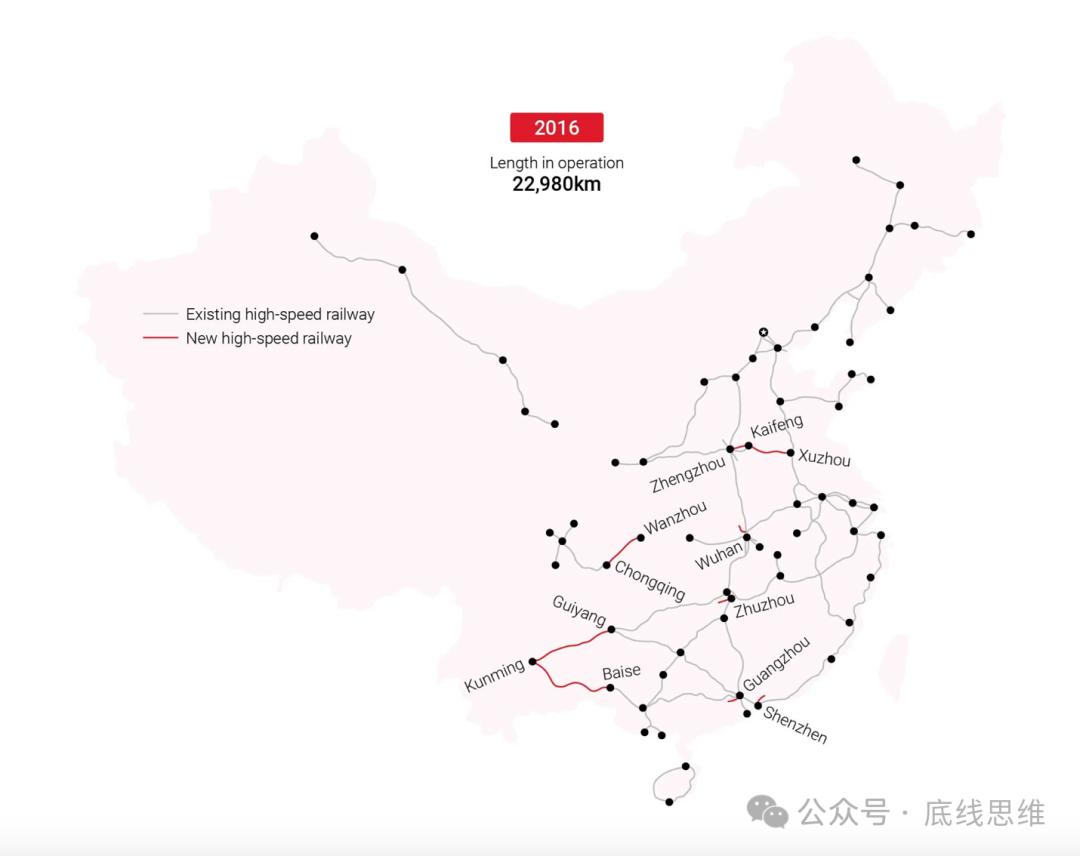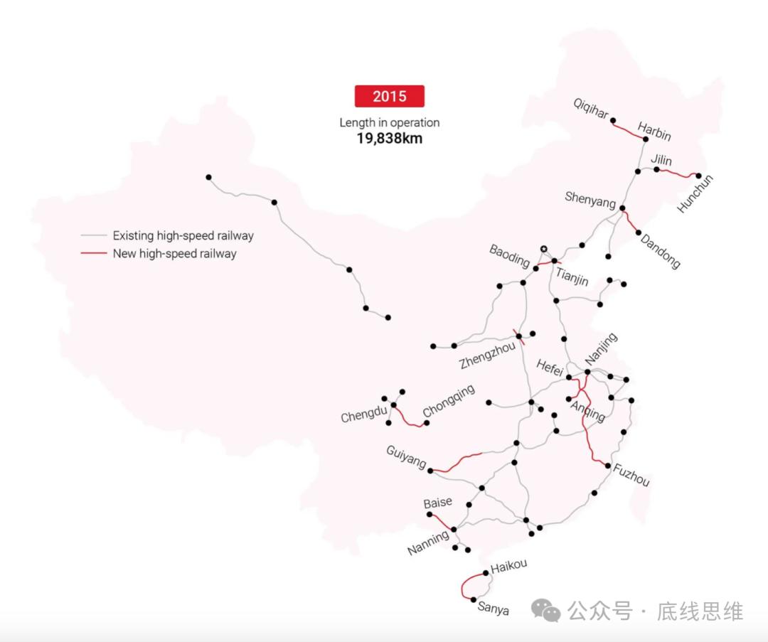 2015年,这一年主要是短线。也只有在中国高铁,这些几百公里的线路才是短线,在其他国家,这就是长线了。这一年,最重要的是成渝线,贵阳往华东的高铁线也打通了。