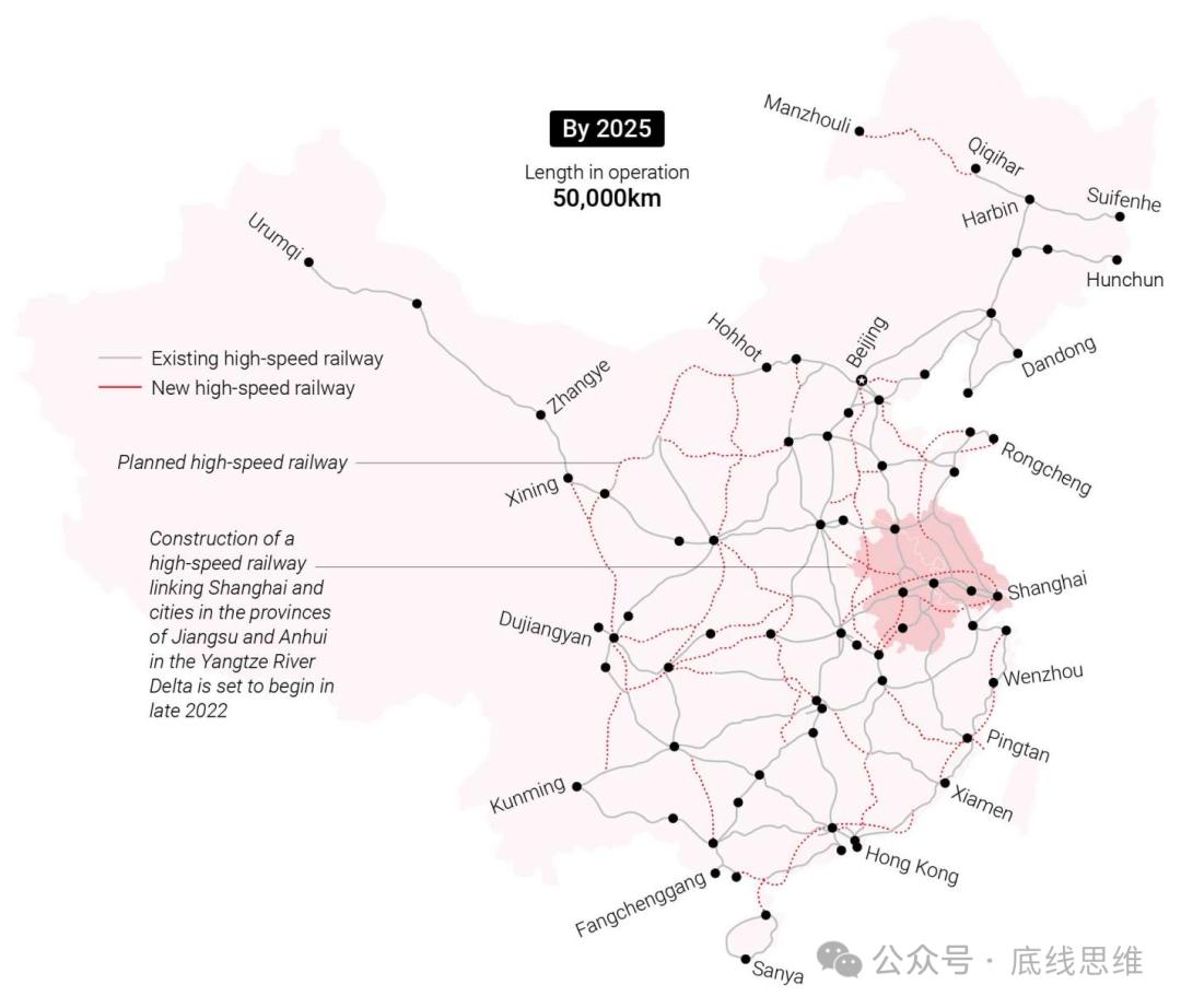 到2025年,目标是打通八纵八横,中国高铁又上新层次了,不仅一二线大城市全部贯通,三四线中小城市也大量贯通,这对经济中心进一步向三四线城市扩散和缩小城乡差距有巨大作用。