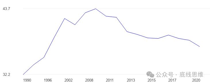 做大蛋糕也可以从居民消费对GDP的占比来看。在2008年时,这个占比约35%;2023年时,提高到39%,有所提高,但并不多。也就是说,再分配的贡献是正面的,但贡献还主要开始来自做大蛋糕。
