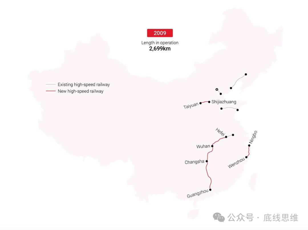 2009年,合肥到广州线建成,宁波-温州、石家庄-太原线建成。
