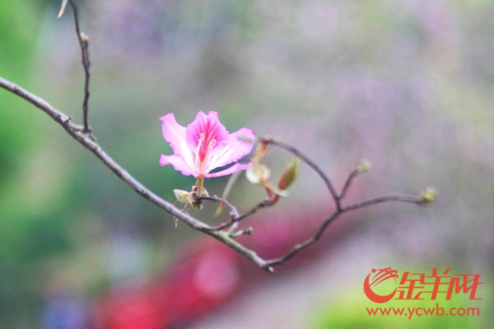 在华圣公园和甘竹山公园里,宫粉紫荆争先盛放,粉红色的花朵轻盈美丽,清风轻拂,花瓣在枝头轻轻舞动,时而有花瓣飘落,公园便成了一个粉色的海洋,如诗如画,引无数游人流连忘返。