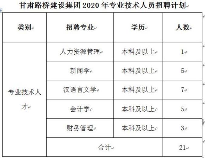 5、2020年甘肃路桥建设集团有限公司招聘21人