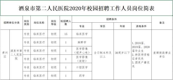 4、2019年酒泉市第二人民医院公开招聘工作人员20人