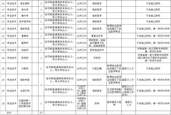 3、2019年白银市第一人民医院公开招聘工作人员37人