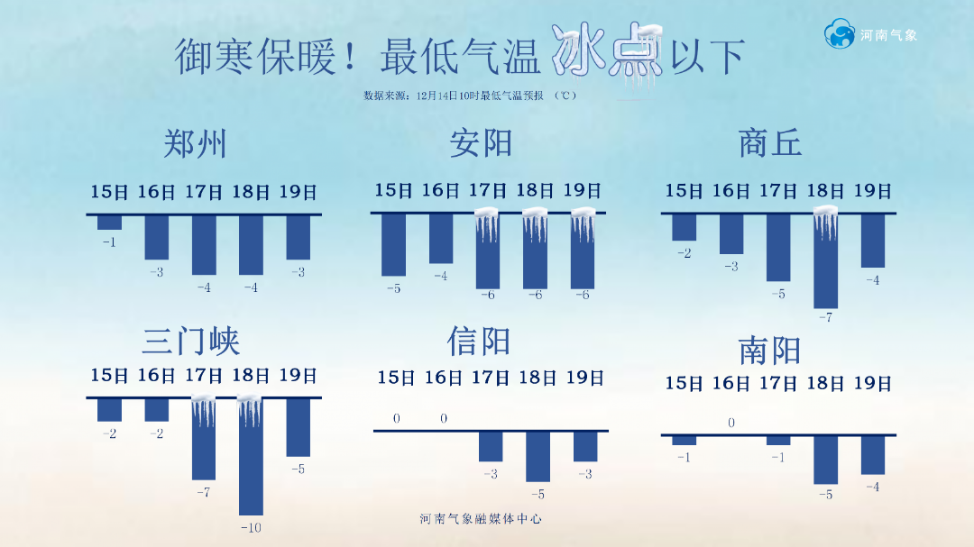 受较强冷空气影响,明天到16日白天,全省自北向南偏北风逐渐加大到4到5级,北中部阵风6到7级;16日夜里到17日,全省西北风5到6级,中西部阵风7到9级,局部10级。16至18日,我省最高气温大幅度下降,西部、南部降幅达8到10度,其他县市降幅达6到8度;全省大部最高气温降至1到3度,西部、北部降至零下3度到零度,西部、西北部山区零下5度到零下3度。18日凌晨最低气温西部、北部降至零下9到零下7度,高海拔山区局部零下12度左右,其他县市零下7度到零下5度。
