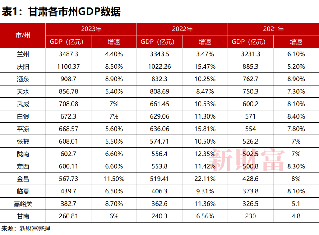 排名第二的庆阳,2022年GDP突破千亿大关,2023年达到1100.37亿元。