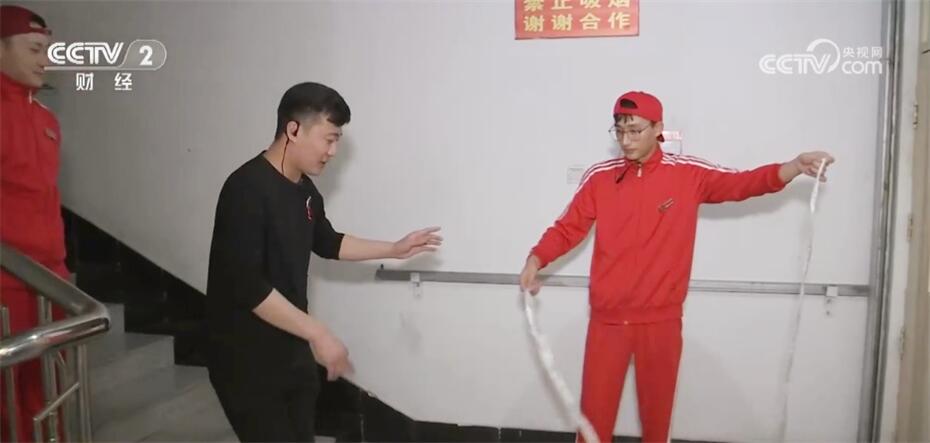 中午两点左右,史昌换班,可以休息一会儿,趁着这个空档,史昌带上两个徒弟去楼梯间训练甩面。甩面是史昌所在火锅店吸引客流的重要业务,去年史昌一共带了3个徒弟。随着门店生意日渐红火,史昌预计今年得带出9个徒弟。