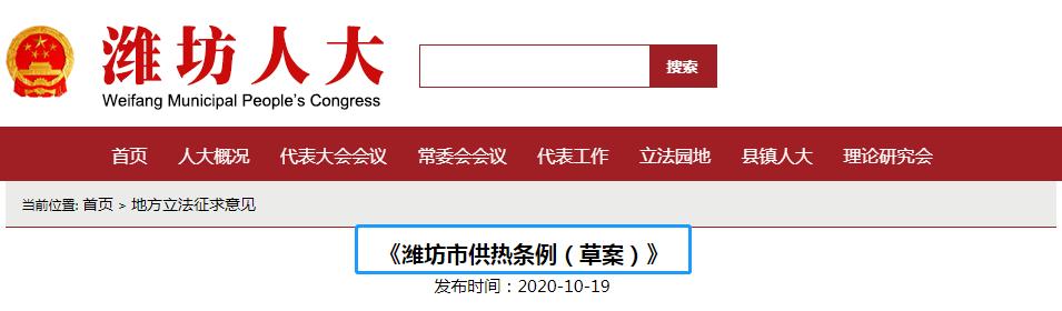 据悉,今年8月6日,市十七届人大常委会第三十五次会议对《潍坊市供热条例(草案)》及其说明进行了初次审议。根据《潍坊市制定地方性法规条例》规定,市人大常委会办公室已于10月19日将《条例(草案)》及其说明在潍坊人大门户网站“地方立法征求意见”栏目面向社会公布,社会各界和广大市民可以对《条例(草案)》提出意见和建议。征求意见截止日期为2020年11月20日。