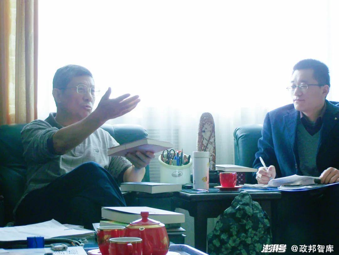 图为2007年梁衡先生(左)与政邦智库理事长高明勇在一起。