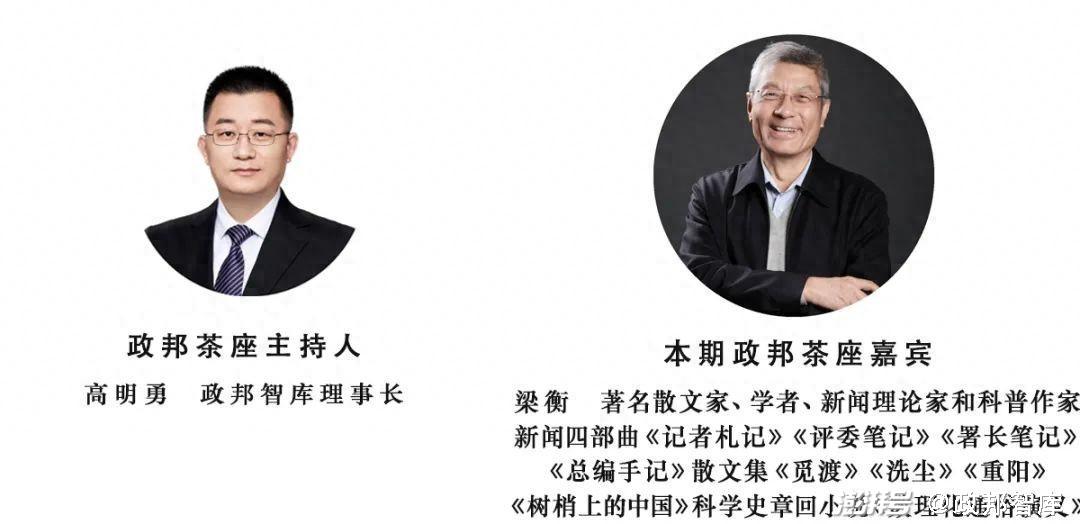 本期政邦茶座嘉宾:梁衡,著名散文家、学者、新闻理论家和科普作家。中国人民大学新闻学院博士生导师、中国作家协会全国委员会委员、人教版中小学语文教材总顾问、国家林业和草原局科普首席人文顾问。曾任《光明日报》记者、国家新闻出版署副署长、《人民日报》副总编辑。著有新闻四部曲《记者札记》《评委笔记》《署长笔记》《总编手记》,散文集《觅渡》《洗尘》《重阳》《树梢上的中国》《把栏杆拍遍》《千秋人物》,科学史章回小说《数理化通俗演义》。有《梁衡文集》九卷、《梁衡文存》三卷。曾获赵树理文学奖、鲁迅杂文奖、全国优秀科普作品奖、全国好新闻奖和中宣部“五个一工程”奖。先后有《晋祠》《觅渡,觅渡,渡何处》《跨越百年的美丽》《壶口瀑布》《夏感》《青山不老》《把栏杆拍遍》等60多篇次的文章入选大、中、小学教材。