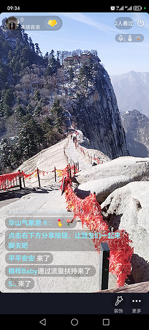 “气象君”通过移动端小屏幕链接,实时呈现中国五岳之一的华山的景观,让公众在线就能欣赏华山的日出日落、云海雾凇等景色;饱览秦岭主峰太白山高耸入云的雄伟气势和瞬息万变的气候神姿;领略广阔无垠的榆林风能、盐田等能源美景,一睹黄土峰林地貌的壁立千仞、高峡平湖、血染丘陵等地质景观。同时,借助“陕西气象”抖音、快手、微博、微信等新媒体渠道,在直播画面中嵌入气象科普和气象预警信息,结合重大天气过程推出首席访谈,增强网民的互动体验,使气象服务更加生动、亲民。