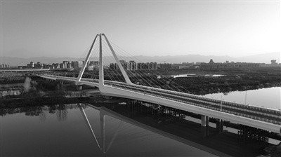 从西安钟楼出发,向西北而行,驱车30公里便抵达咸阳地界。跨越渭河时,一座双塔相对、斜拉而立的大桥映入眼帘,大气优美的桥体倒映在波光粼粼的渭河中,引得过往行人时时拍照留影。