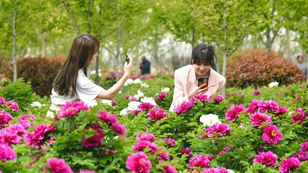 在秦汉新城红林牡丹园多个牡丹品种,为新区增添了一抹浓烈的色彩。