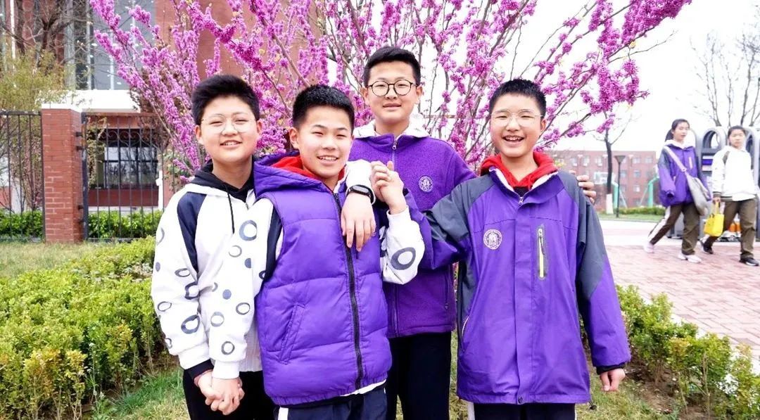 4月的清华附中秦汉学校门前,堆堆簇簇的紫荆花开出一片紫色海洋。