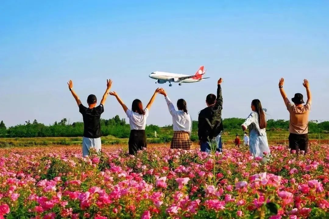 4月底,空港新城云间花境将迎来月季花海,这里紧邻西安咸阳国际机场跑道,在花海中与飞机合影绝对是独一份的体验。