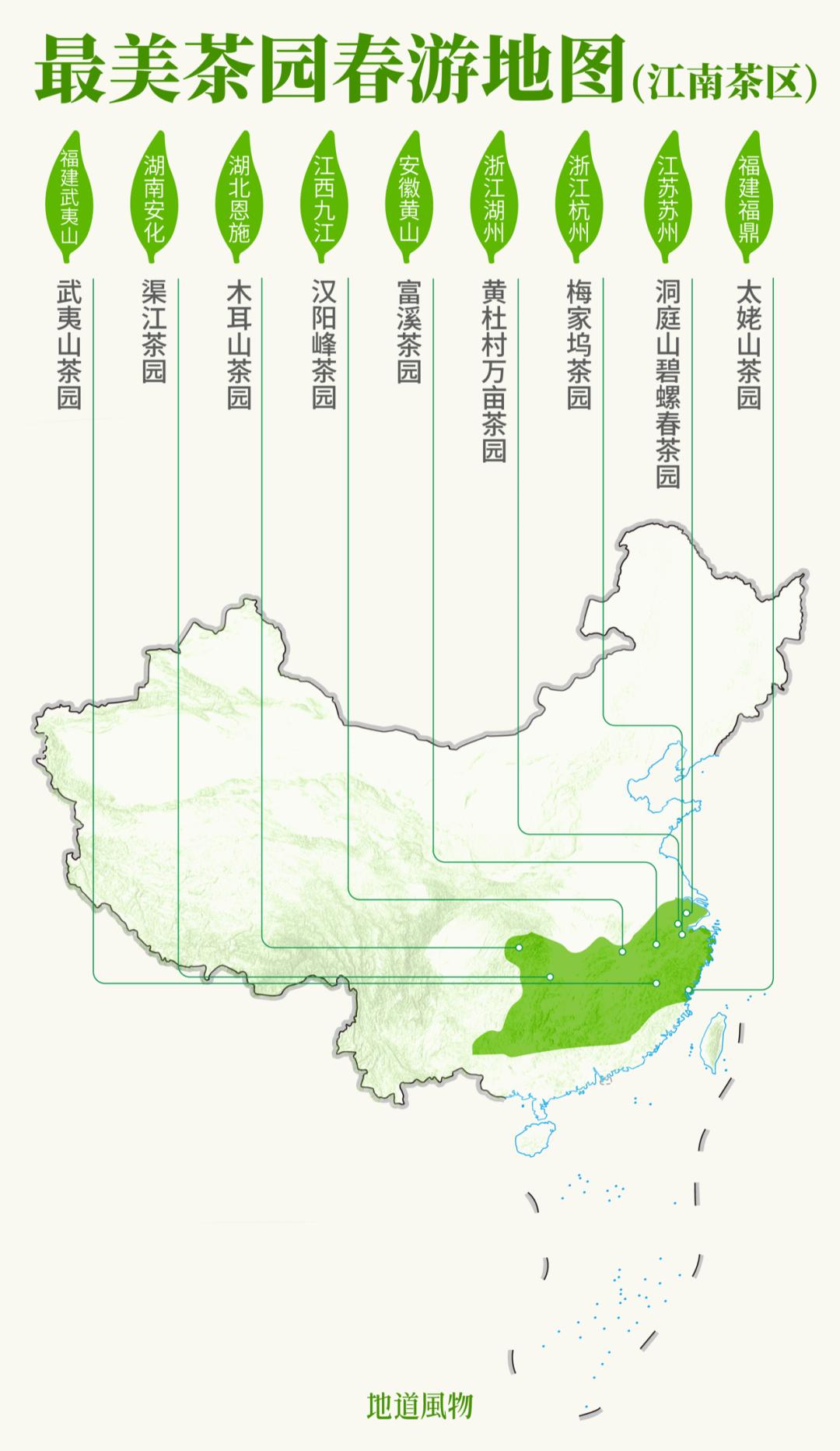 春茶的绿意遍布大江南北,和我们其实并不遥远,想知道中国哪里的春茶园有最好的春光吗?那就循着我们整理的这份“中国最美茶园春游地图”,一起去茶园吧!