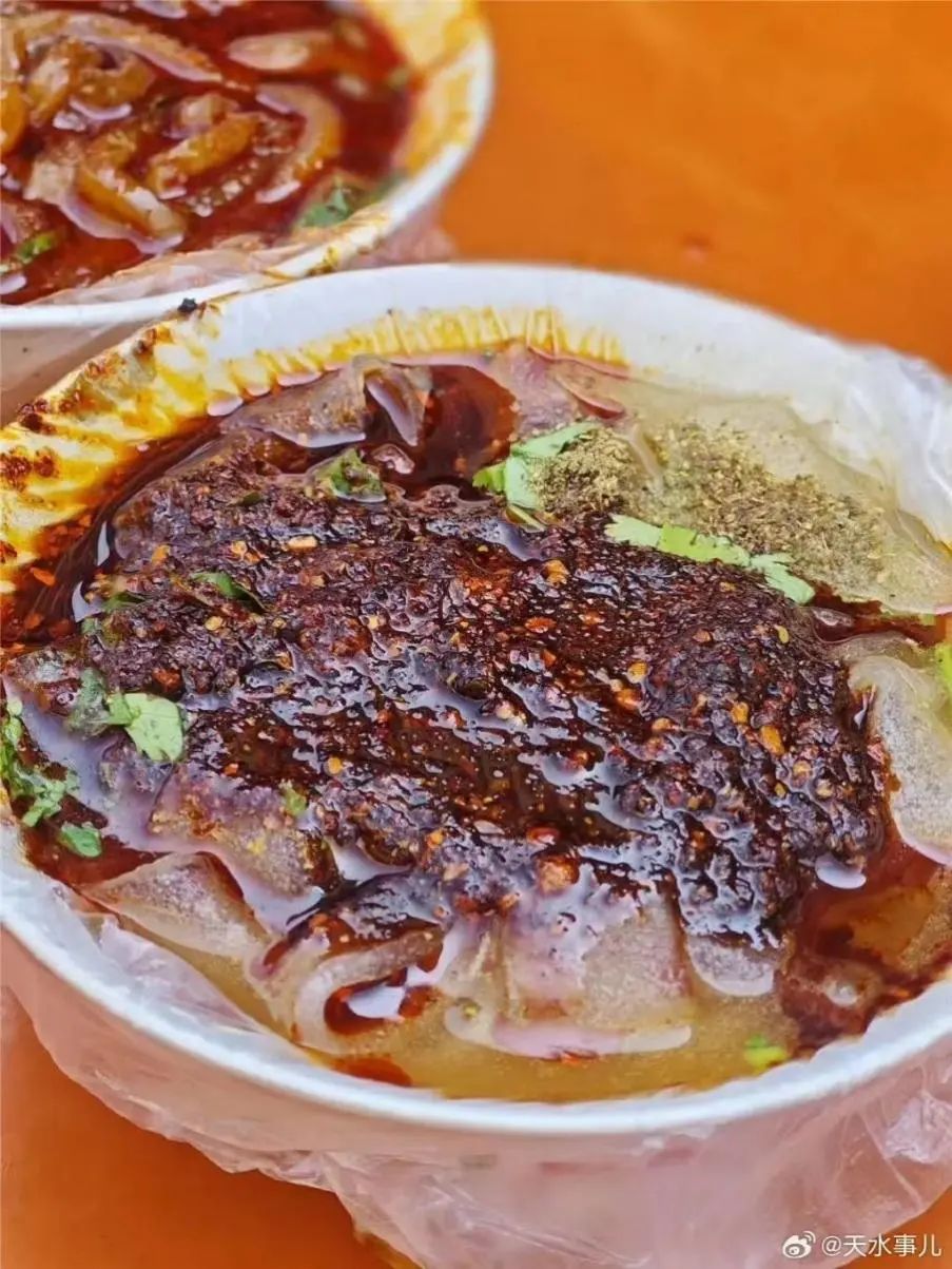 4. 紧挨着甘肃的青海,麻辣烫的做法也较为独特——辣椒要炒得焦香,刚入口时口感有些油,但胜在越吃越香,有一种在辣子中捞食物的视觉冲击。在青海,同样可以吃到类似于天水麻辣烫中的宽粉。