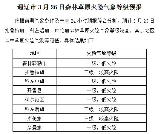 明天夜间到后天白天:扎鲁特旗南部、科左中旗、科尔沁区、奈曼旗晴转小雨,科左后旗、库伦旗有小雨,其余地区晴转多云,霍林郭勒、扎鲁特旗北部、科左后旗、库伦旗南风3-4级转5-6级,阵风7-8级;其余地区南风3-4级转4-5级,阵风6-7级;市区最低气温:3℃,最高气温:15℃。