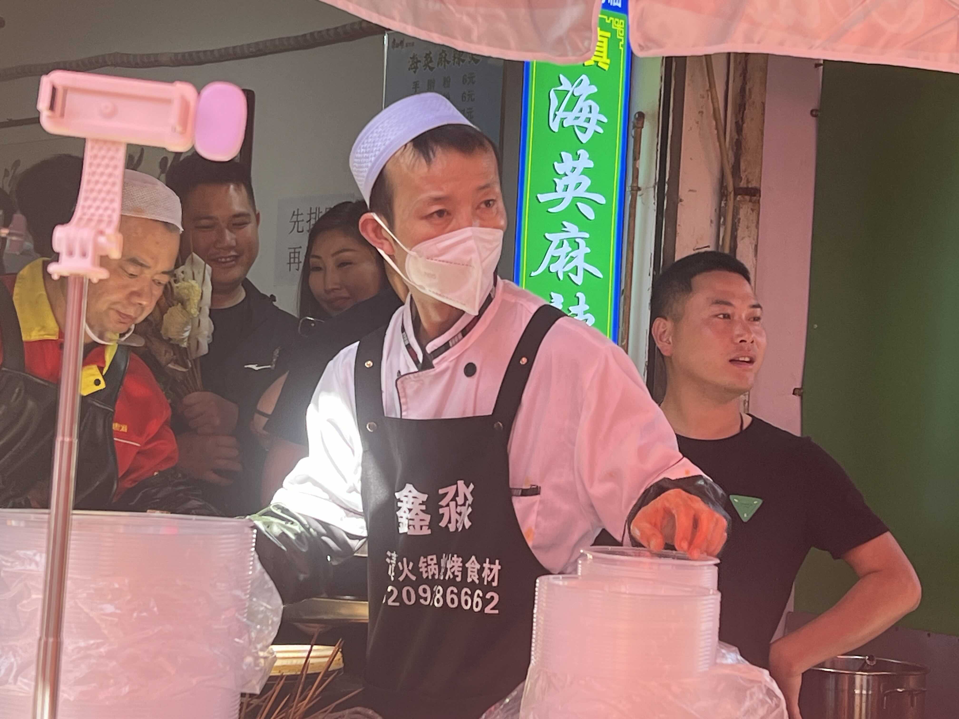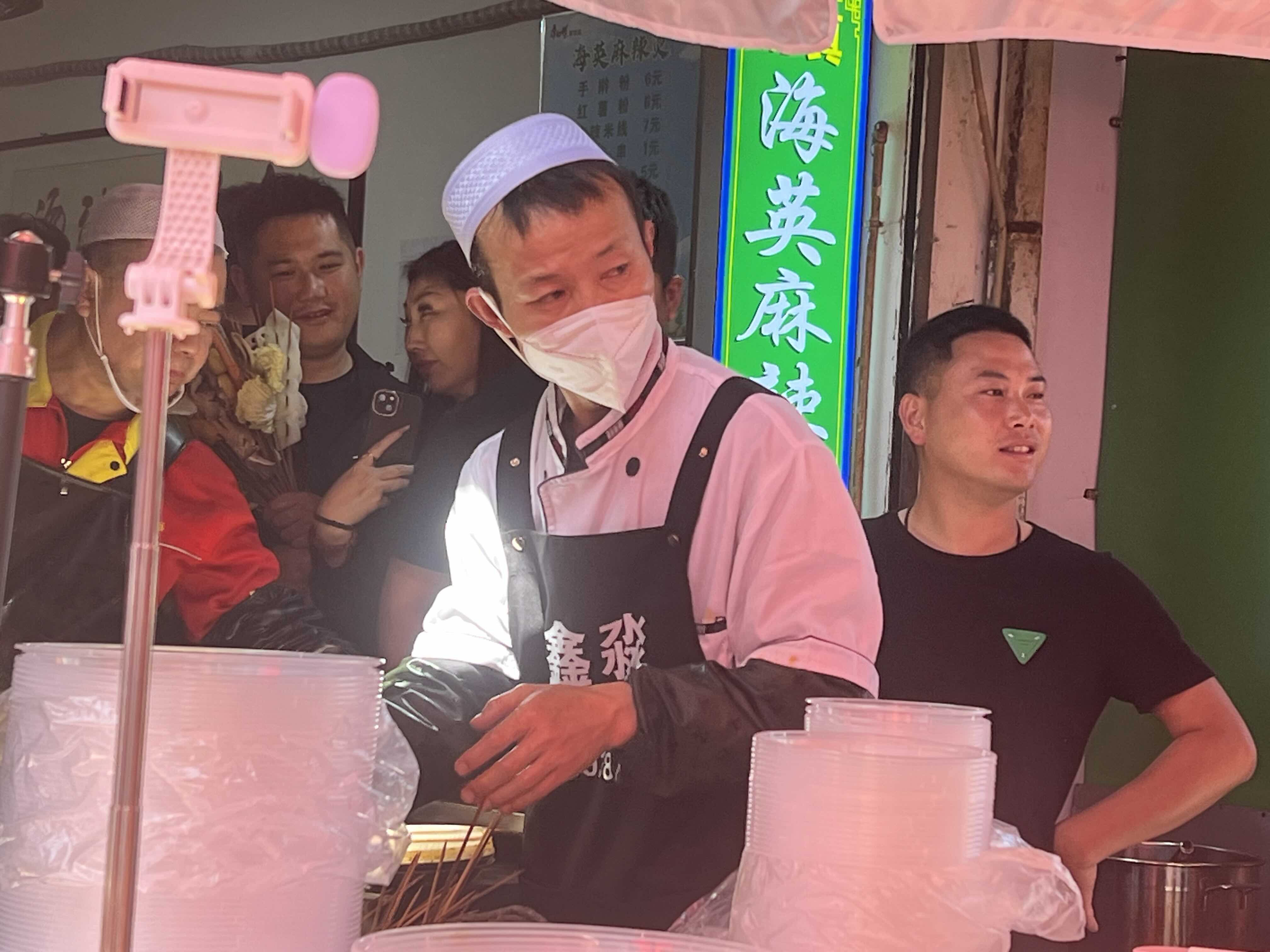 因店内顾客太多,麻辣烫老板表情“痛苦”,甘肃文旅在网上提醒“注意表情管理”,麻辣烫大叔看到之后展露笑颜。这样的一系列互动,让“麻辣烫大叔”成为“流量”。