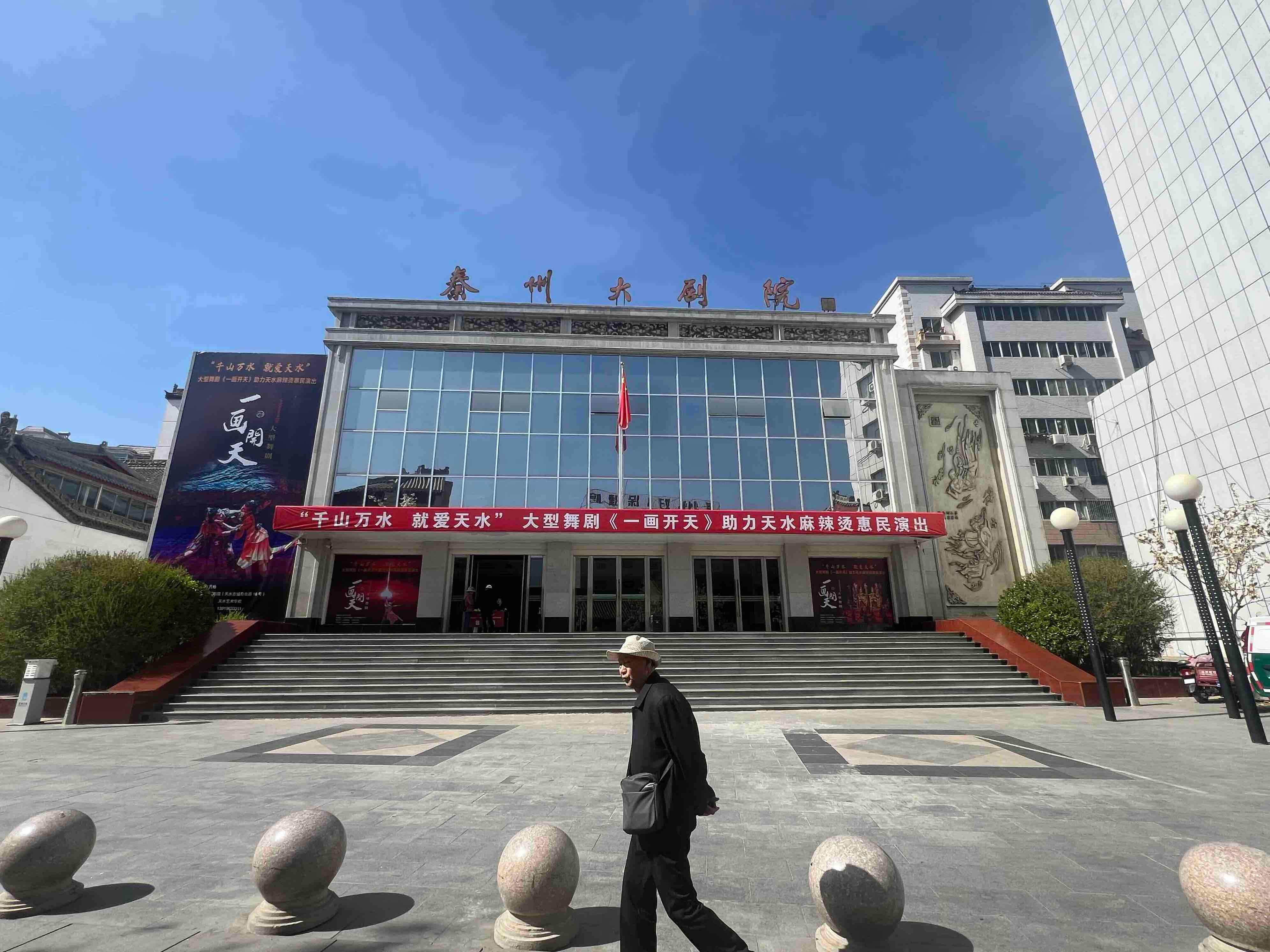 在返程的途中,记者搭乘了一辆网约车,司机尤师傅推介着天水的人文地理,并帮记者规划着两天一夜天水之行该如何安排。路过当地的秦州大剧院时,看到这样的横幅“大型舞剧助力天水麻辣烫惠民演出”。