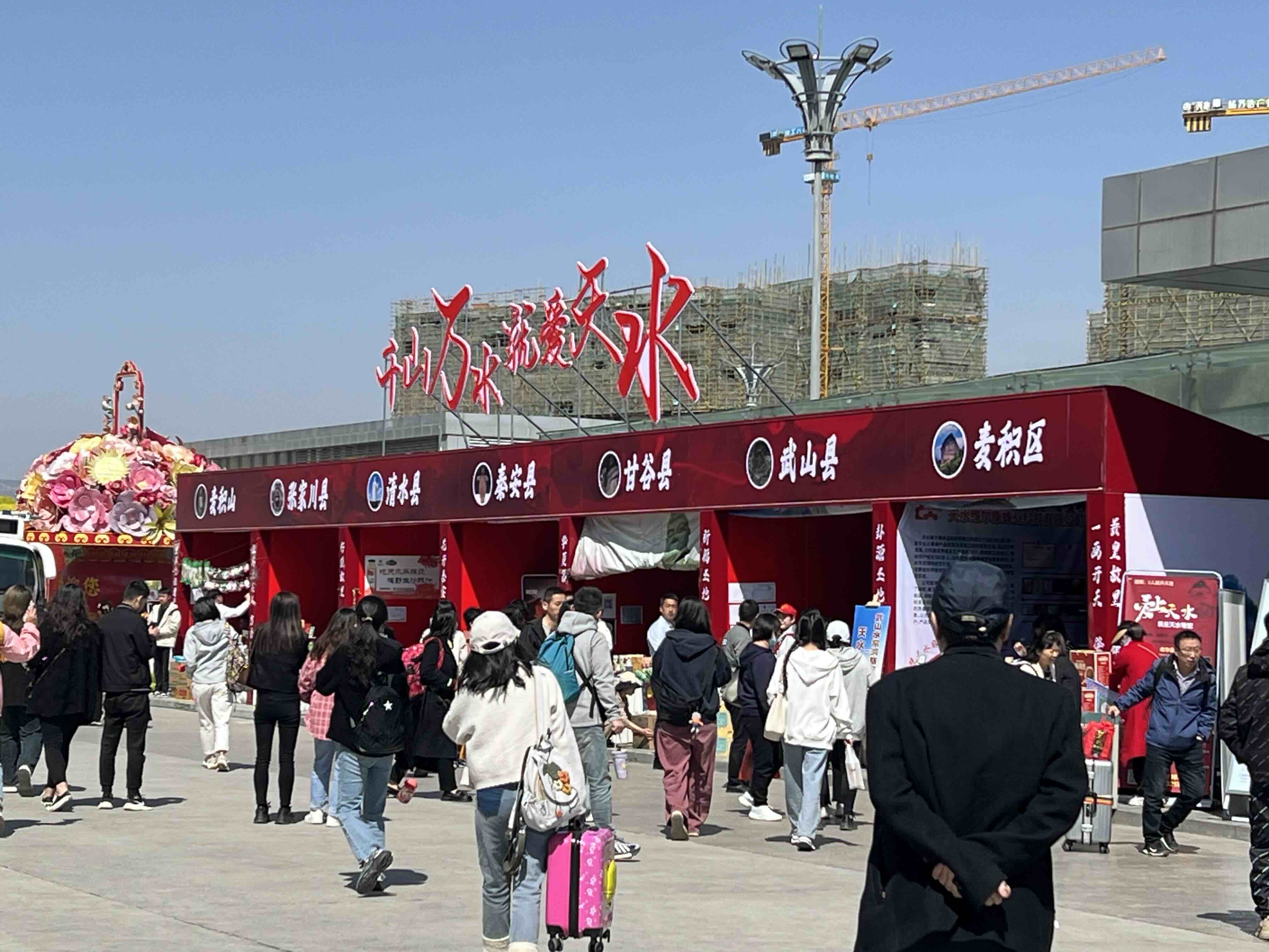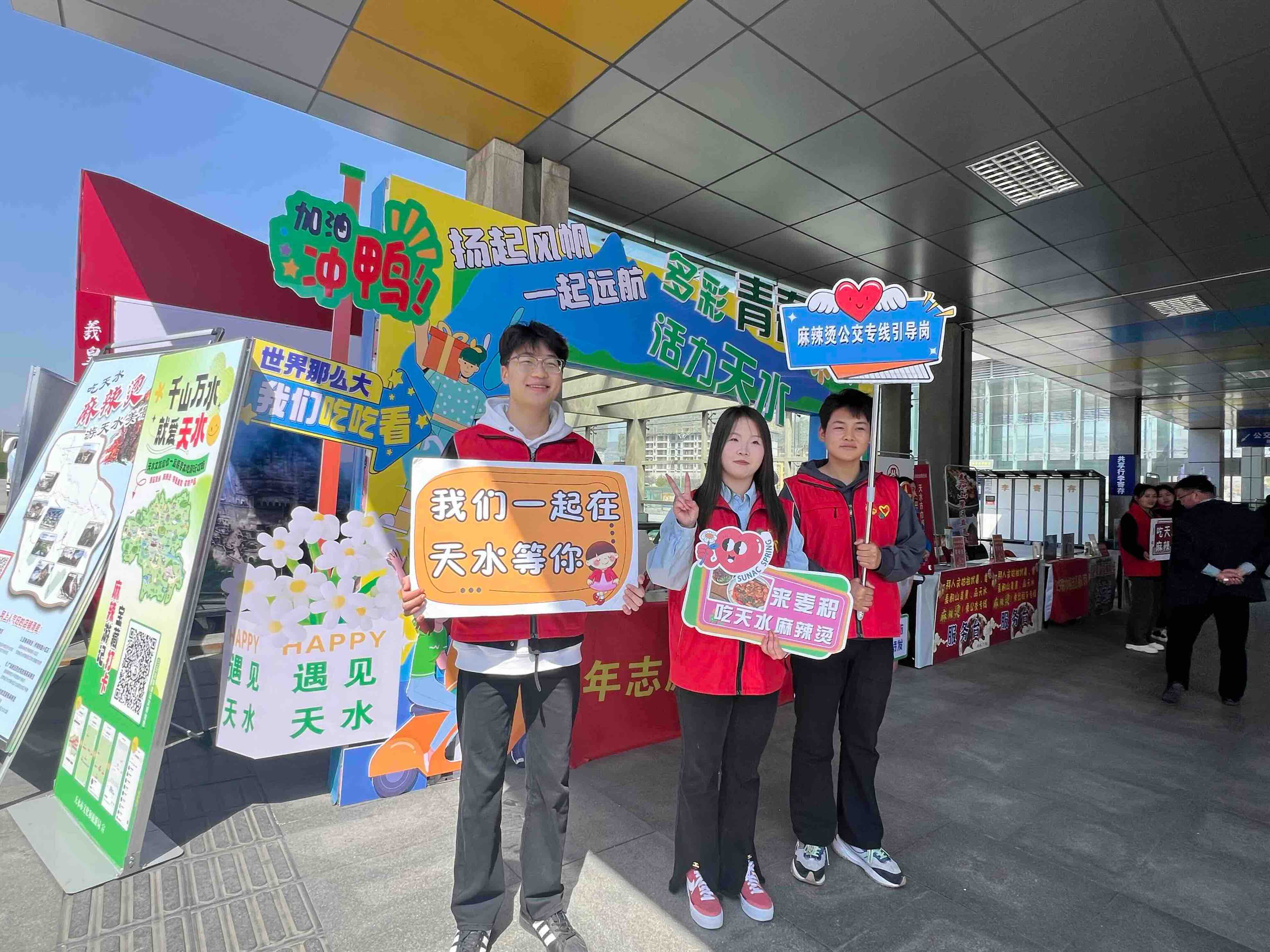 “千山万水 就爱天水”“世界那么大 我们吃吃看”“看麦积 吃天水麻辣烫”的宣传展板将氛围感拉满。只要看到有人在拍摄,几名年轻的志愿者马上配合,摆姿势、调角度。一位工作人员告诉记者:“我们从早上8点开始上岗,一直到晚上10点,只要有列车来,我们就不下班。”