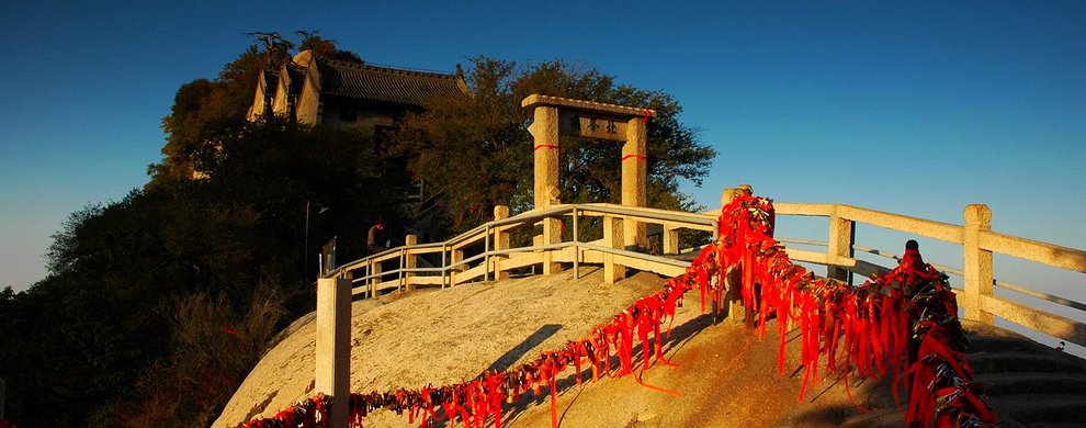 华山风景区位于陕西省渭南华阴市境内,距西安120公里,在全国乃至世界享有很高的声誉”之称。华山为五岳之西岳,南接秦岭,北瞰黄渭,扼守着大西北进出中原的门户,资源丰富,景观独特,文化内涵丰厚。华山是中华民族文化的发祥地之一,据清代著名学者章太炎先生考证,中华、华夏 皆因华山而得名。华山是神州九大观日处之一,位于东峰(亦称朝阳峰)。华山的著名景区景点多达210余处,其中华岳仙掌被列为关中八景之首。华山由一块完整硕大的花岗岩体构成,它的历史衍化可追溯到1.2亿年前,凭借大自然风云变换的装扮,华山的千姿万态被有声有色的勾画出来。同时华山也留下了无数名人的足迹,也留下了无数故事和古迹。自隋唐以来,李白、杜甫等文人墨客咏华山的诗歌、碑记和游记不下千余篇,摩岩石刻多达上千处。自汉杨宝、杨震到明清冯从吾、顾炎武等不少学者,曾隐居华山诸峪,开馆授徒,一时蔚为大观。华山同时也是道教胜地,为道教第四洞天,有陈抟、郝大通、贺元希等著名的道教高人。山上现存七十二个半悬空洞,道观20余座。