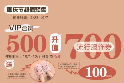 紫涵:五倍充值,首单免单。HOPESHOW&ITGIRL:夏款5折起,秋装一件9折、两件8折。LEISURE:全场3.8折起。花儿开了:部分款一口价,秋款6折起,新款8.8折。伊芙丽:春夏款5折起,冬款3-5折,秋款7折起。'SEIFINI:全场夏款6折起。DT:夏款99元—159元,秋款一件8.5折、两件8折。蛋卷鞋:99元起,新款9折。DM:夏款150元一双,18年秋冬款299元起,新款满400元减80元。GUC:秋款8.8折,派克服一口价880元。拉格蓓芮:新款8.8折,部分款3.8折。