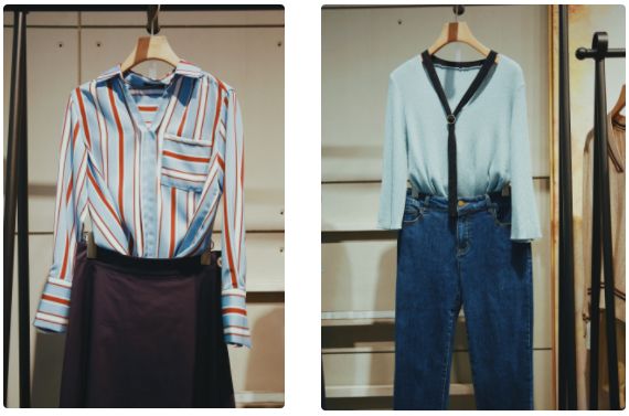 左:衬衣499元,裙子599元;右:针织衫499元,裤子499元。