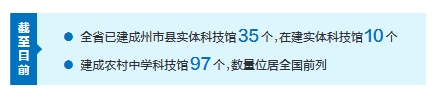 省科协相关负责人介绍,目前,规划面积250亩的省科技馆新馆建设项目正加快推进。我省将稳步推进县级以上实体科技馆建设,加大对实体科技馆免费开放支持力度,并切实提高科普大篷车、流动科技馆巡展覆盖面,补齐基层公共科普服务短板。