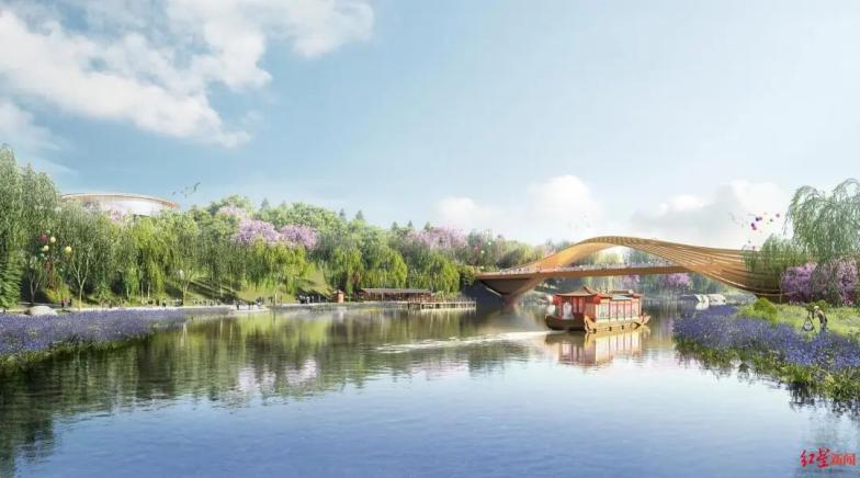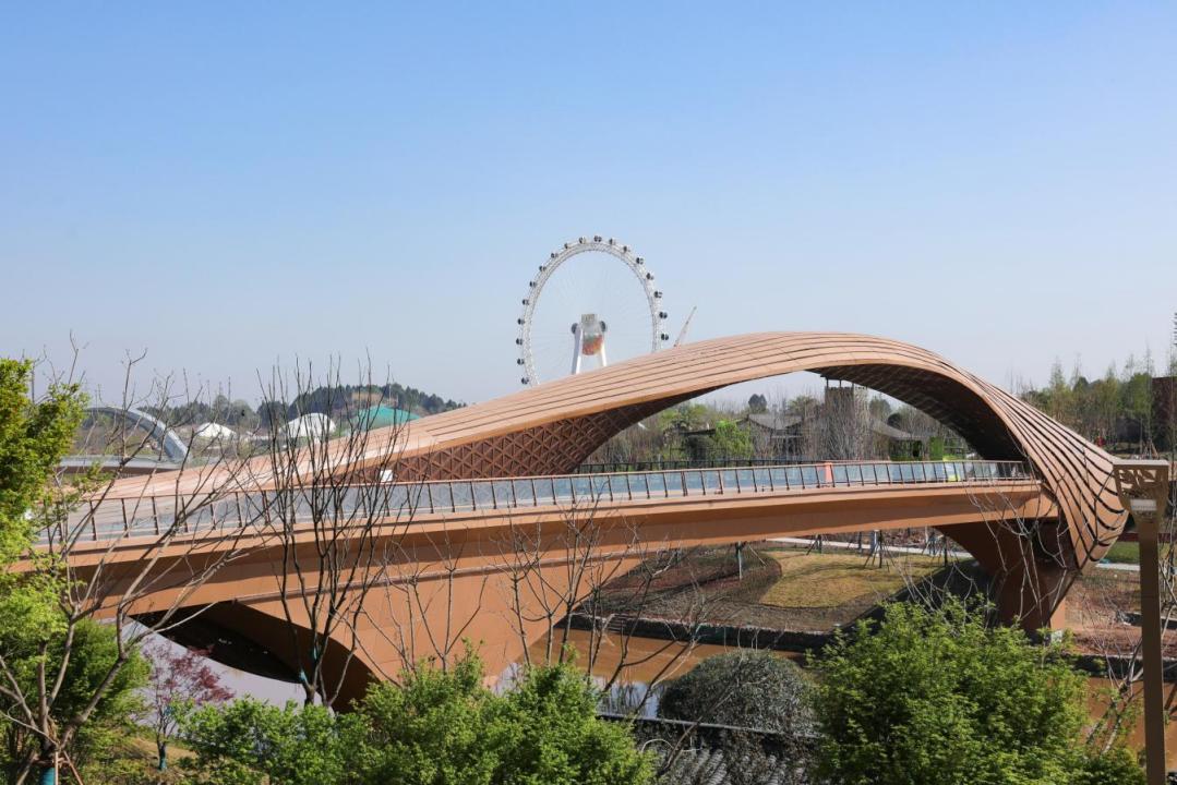 明月桥位西侧为中华园艺展区,东侧为天府人居展区。“桥梁的主题应当充分融入中华文化元素,展现川蜀文化的特征,而月亮是非常符合这一考虑的文化符号。” 杜攀介绍说。
