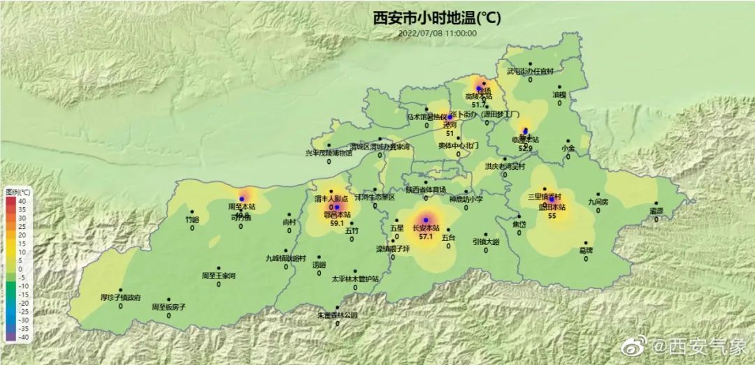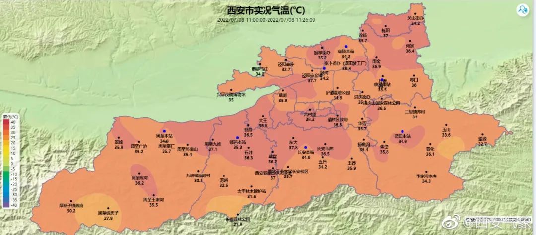 预计今天午后下述地区最高气温将升至40℃以上:西安市未央区、新城区、碑林区、莲湖区、灞桥区、雁塔区、阎良区、临潼区、长安区、高陵区、鄠邑区、西咸新区、蓝田县、周至县,安康市白河县,宝鸡市渭滨区、金台区、陈仓区、凤翔区、岐山县、扶风县、眉县,杨凌示范区杨陵区,商洛市山阳县、镇安县,渭南市临渭区、华州区、华阴市、大荔县、蒲城县、富平县、潼关县,咸阳市渭城区、秦都区、兴平市、三原县、泾阳县、乾县、礼泉县、武功县,请各级相关部门和行业切实加强高温防范工作的组织管理,落实重点行业领域高温时段安全生产措施,统筹安排调度民生安全保障措施。