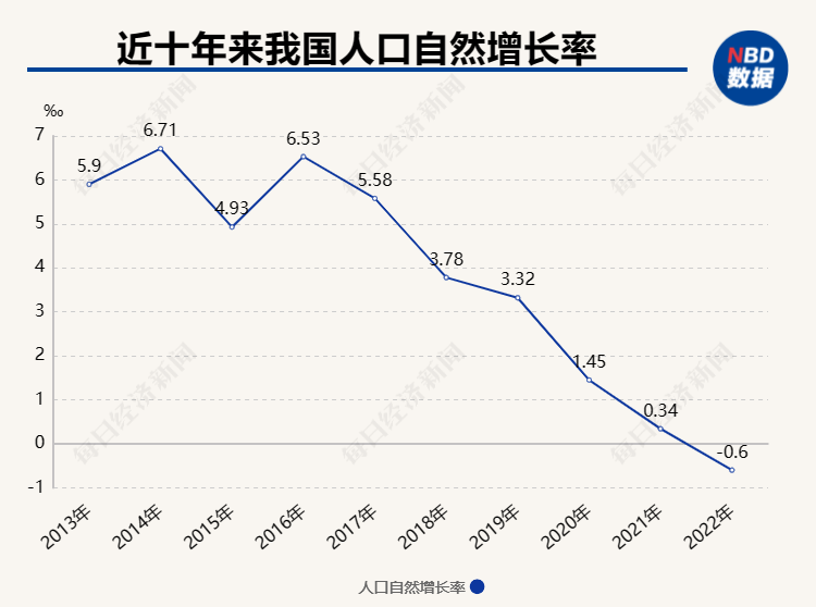 2022年我国人口自然增长率已跌入负值区间数据来源:国家统计局