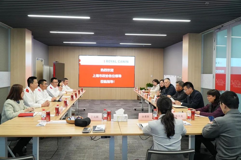 调研组在皇誉宠物食品(上海)有限公司了解外资宠物企业的发展情况。皇誉宠物食品(上海)有限公司为皇家在中国设立的全资子公司。皇家宠物食品是一家在宠物健康营养领域领先的全球性公司,始于1968 年,隶属玛氏集团,皇家全球至今研发超过750多种精准营养配方,在中国大陆市场销售产品有100多个配方。