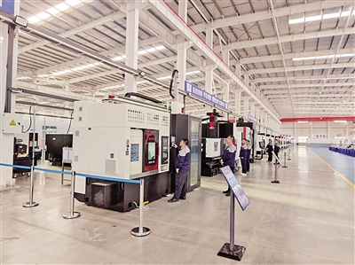 生产车间内一台台数控刀塔车床整齐排列,打开车床的“舱门”,一条机械手臂同时配有10种工具,犹如“百宝箱”,能够一次性完成车、铣、钻、攻等工艺。机械“巧手”稳准狠,不到一分钟就能实现微米级别的“雕刻”。