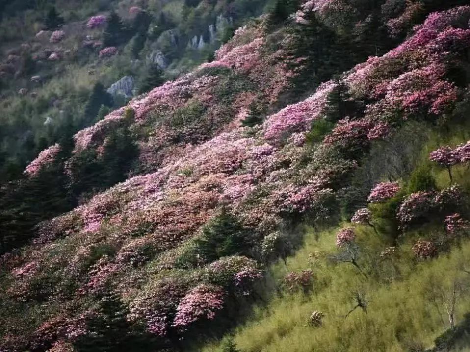 推荐理由:4月份,正是杜鹃盛开的时节,美丽而不妖娆,大气而不做作,如挂满大团花簇,装扮在秦岭的高山树丛中。