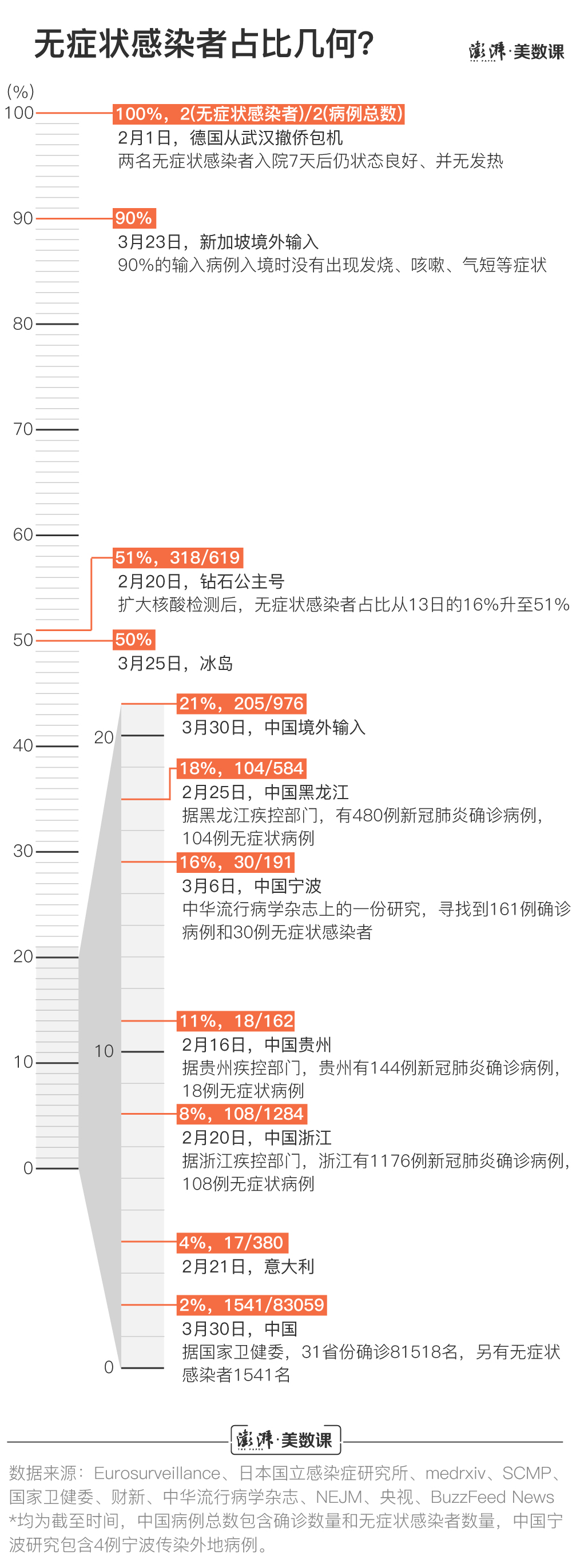 尽管从1月至今,对无症状感染者的认知不断完善,但其中尚未明确且争议较大的一个信息点是,这一群体在感染人群中的占比究竟是多少。
