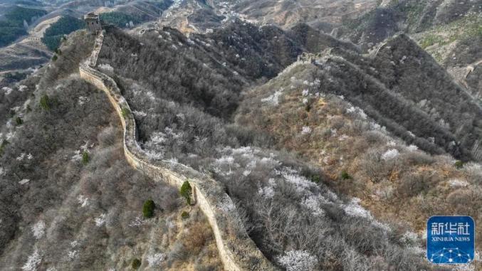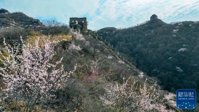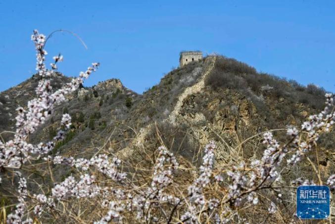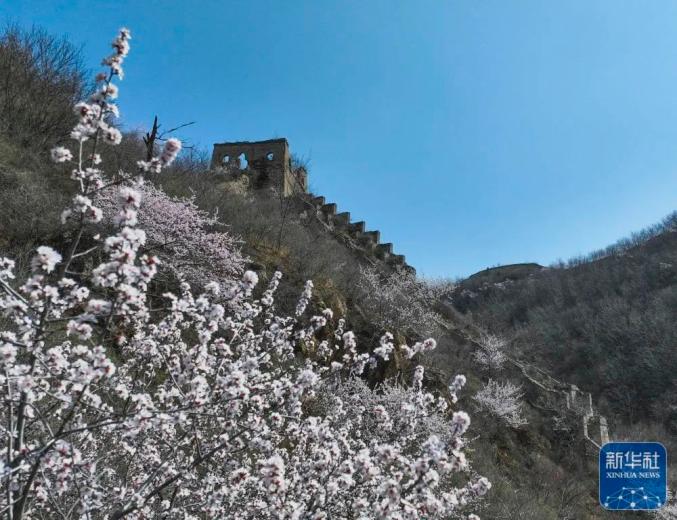 近日,河北省承德市兴隆县境内的长城两侧春花盛开,花海映衬的古长城宏伟壮观,美景如画。
