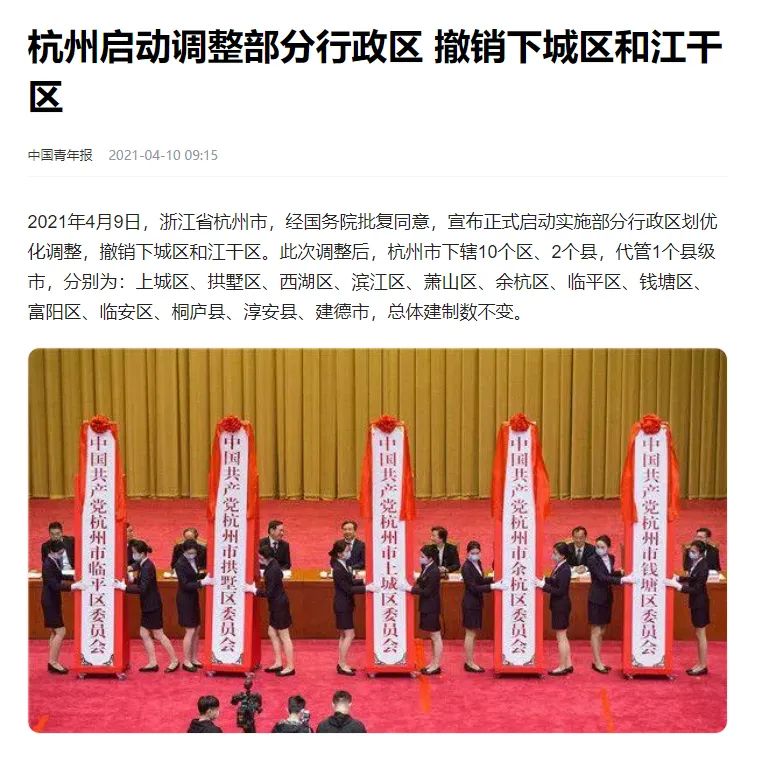 不过,在城市快速扩张后的今天,最早的几个区相比之下确实太小了,有些面积甚至比不上余杭的一个普通街道,这样的调整倒也是情理之中。