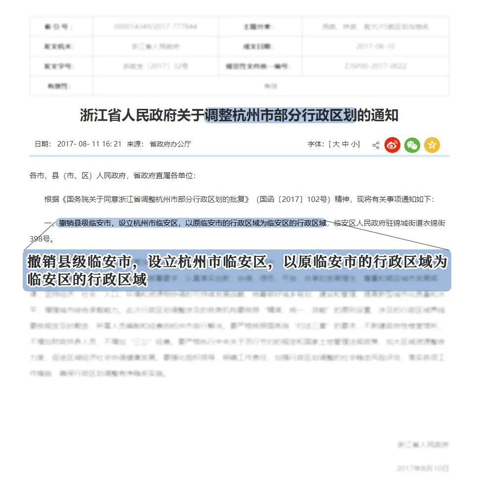 2014年与2017年,富阳、临安分别“撤市设区”,这使得杭州市辖区面积达到了如今的8289平方公里,另外还增加了150万左右的城区常住人口,这也很大程度上是为“城西科创大走廊”增加更多的拓展空间。