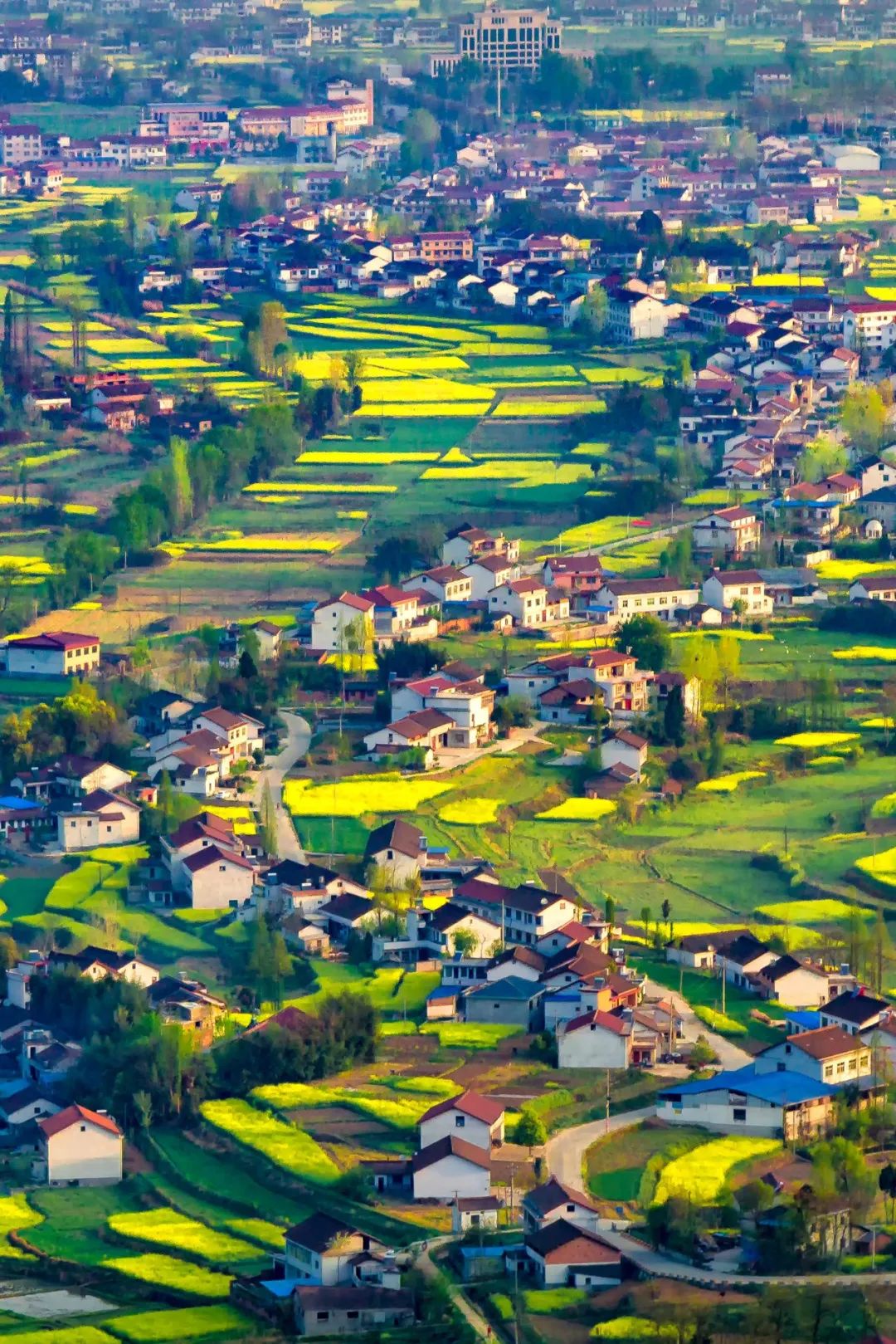 汉中盆地被油菜花渲染成斑驳的黄色。